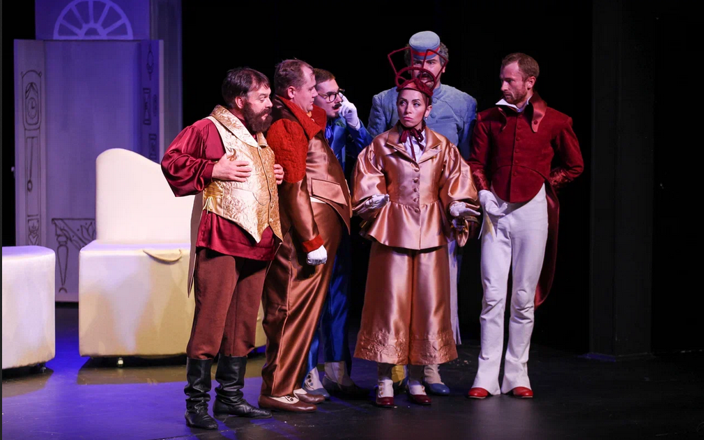 На сцене Молодёжного Театра спектакль играют в лучших традициях фарса и буффонады. Поскольку всё происходящее в сюжете и есть самый настоящий фарс!