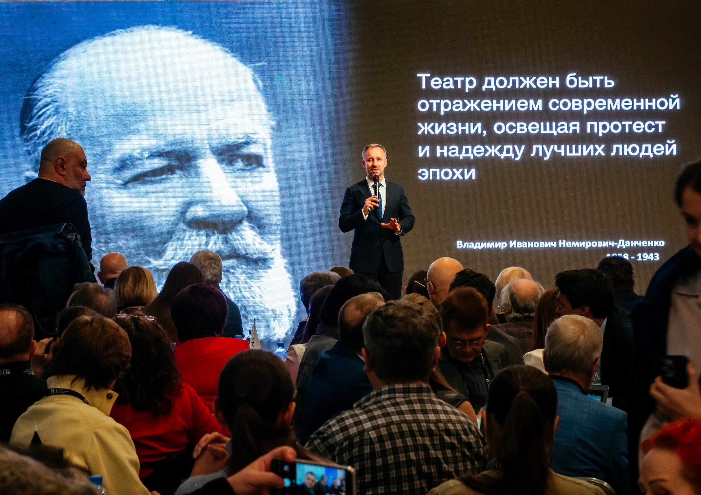 Полномочный представитель Президента РФ в ЦФО напомнил, что в послании Федеральному Собранию 2024 года Глава государства сказал, что «большая многодетная семья должна стать нормой, философией жизни общества, ориентиром всей государственной стратегии». «Мы бы хотели, чтобы вы учли всю значимость и сложность этих задач при обсуждении, формировании Концепции развития театра в России – подчеркнул он - эффективны могут быть не только усилия органов власти, но и культурного сообщества».